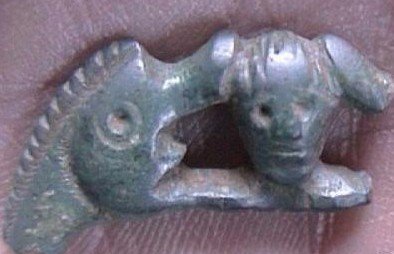 It is not just animal designs that appear on late Roman buckles in Britain. Human heads also appear.