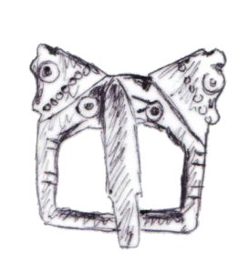 Horsehead buckles are found both in Roman British and early Anglo-Saxon contexts. When found in Anglo-Saxon graves they are often found in women’s graves. This, and the small proportions of the buckles has led some to conclude that the buckles were primarily women’s buckles.