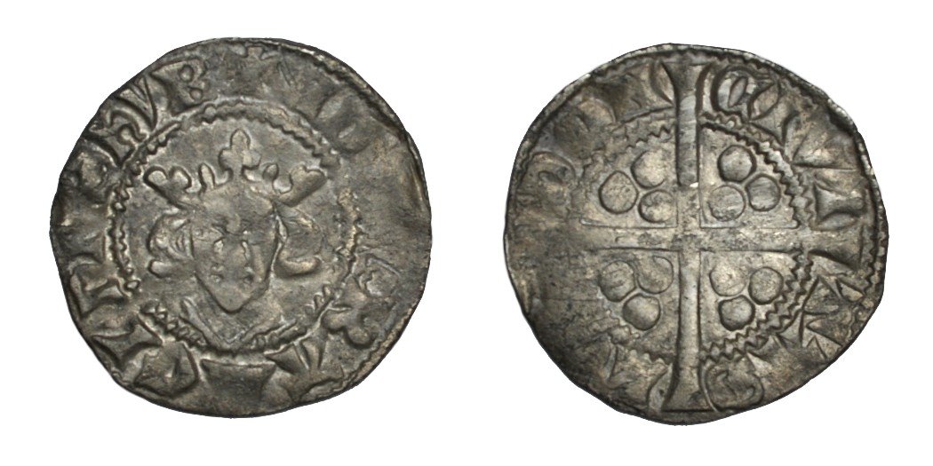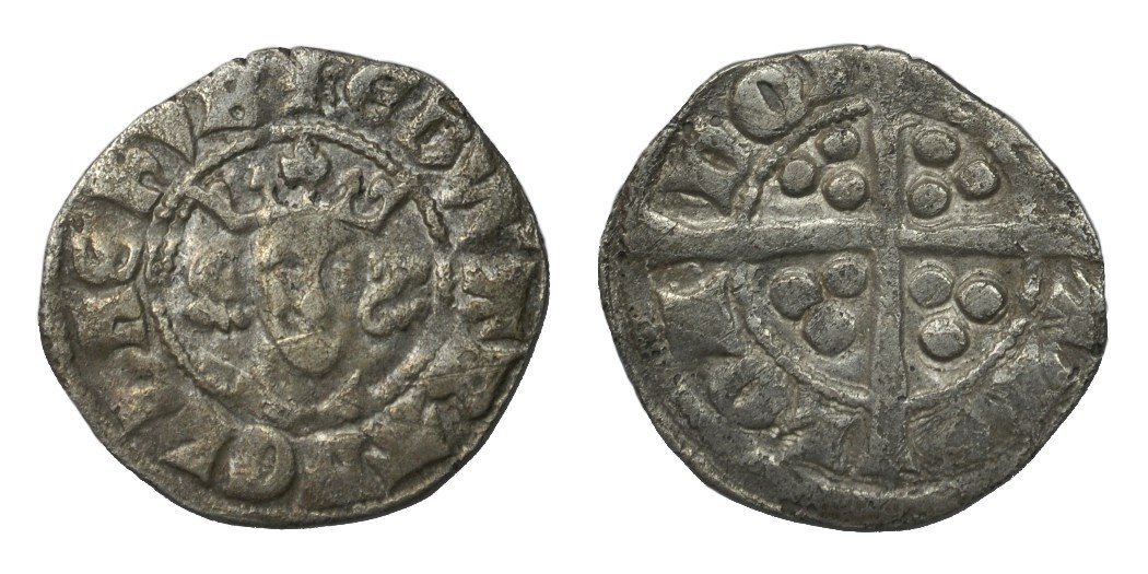 Type 10cf1 (1305 - 1306) - Spink 1410, North 1040Coins of type 10cf1, and all subsequent issues, are classified primarily by the form of their crown. The central fleur of the 10cf1 crown is shaped like a battle-axe, the side-fleurs are wedge-shaped, and the ornaments are spearheads. The coins have a serpentine S, and the letter R is of the stub-tailed type first used for 10ab6. Early ‘trial’ legends of 10cf1 abbreviate the king’s name to EDWAR and shorten ANGL to ANG, but EDWA was the form adopted, and it persisted on the vast majority of coins for the remainder of the group.