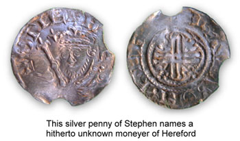 A coin, for example, may provide evidence of a hitherto unknown moneyer, like the silver penny of Stephen illustrated here. The collective recording of many coins, which individually might be insignificant, can establish where and under whose authority they were struck, their area of circulation, and even tribal boundaries. Analysis of findspots of Celtic and early Anglo-Saxon coins in England, for example, has significantly increased our understanding of these periods of our history.